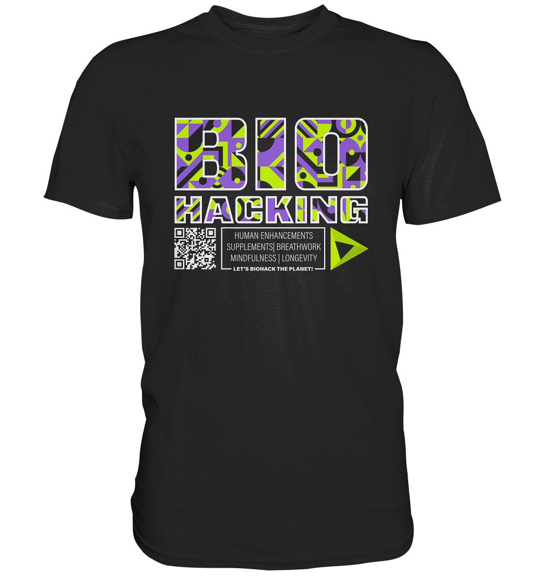 Statement für alle Biohacker und Zukunftsdenker: Dieses T-Shirt bringt deine Leidenschaft für Human Enhancement, Longevity und Mindfulness direkt auf die Brust. Mit seinem auffälligen BIOHACKING Print im futuristischen Design setzt du ein klares Zeichen: Hier geht es um mehr als Mode – es geht um Evolution.