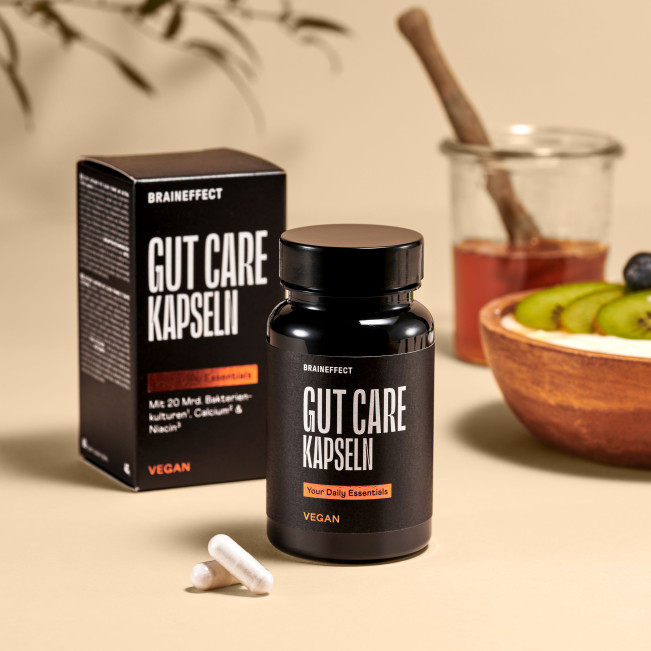 Schwer vorstellbar und doch wahr: Darm und Hirn stehen in direktem Kontakt zueinander. Deshalb ist GUT CARE nicht nur für deine Verdauung, sondern auch für dein Wohlbefinden hilfreich.