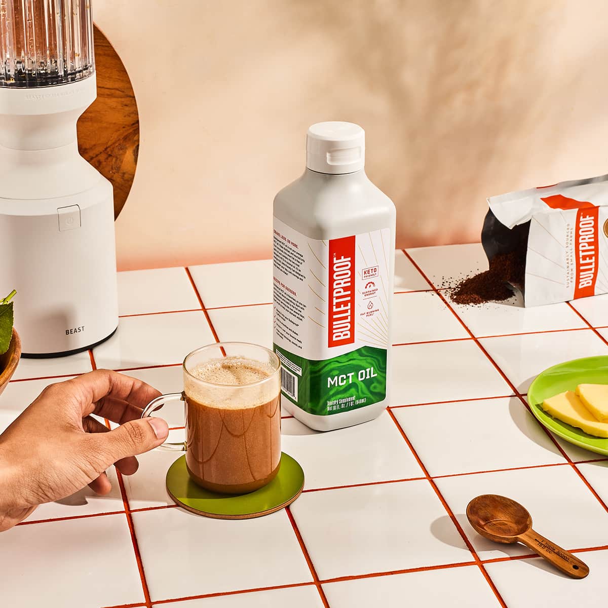 Hersteller: Bulletproof 360, Inc, 1750 112th Avenue NE, Suite C-424, Bellevue, WA 98004, United States, USA. care@bulletproof.comImport: Upgraded Humans Bocksberg 30b, 22395 Hamburg, Deutschland, info@upgraded-humans.com